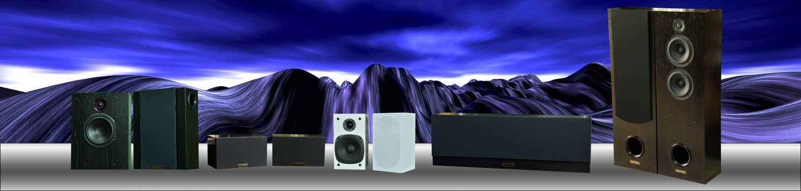 often see flat panel type speakers. Here is a range of home theatre