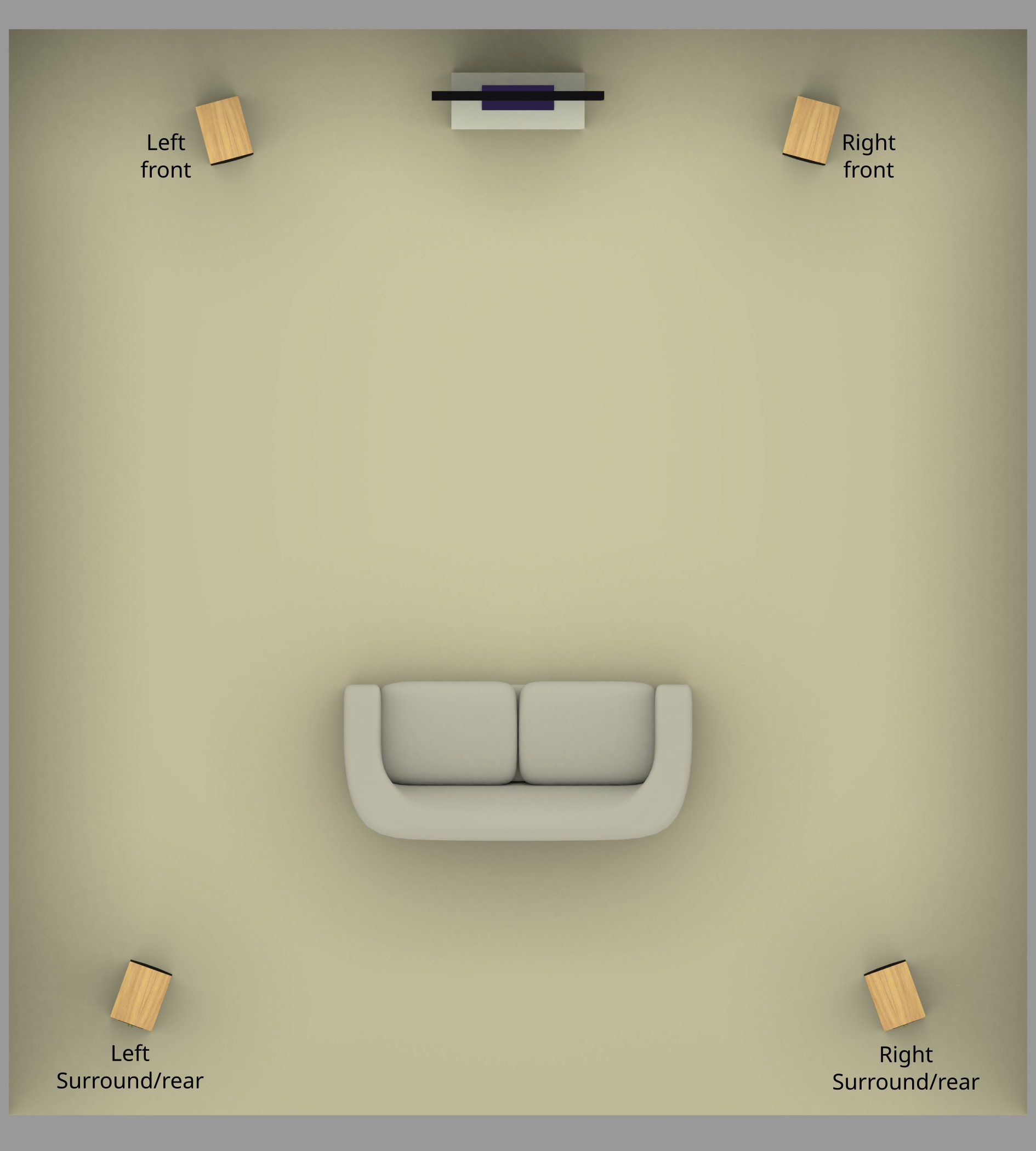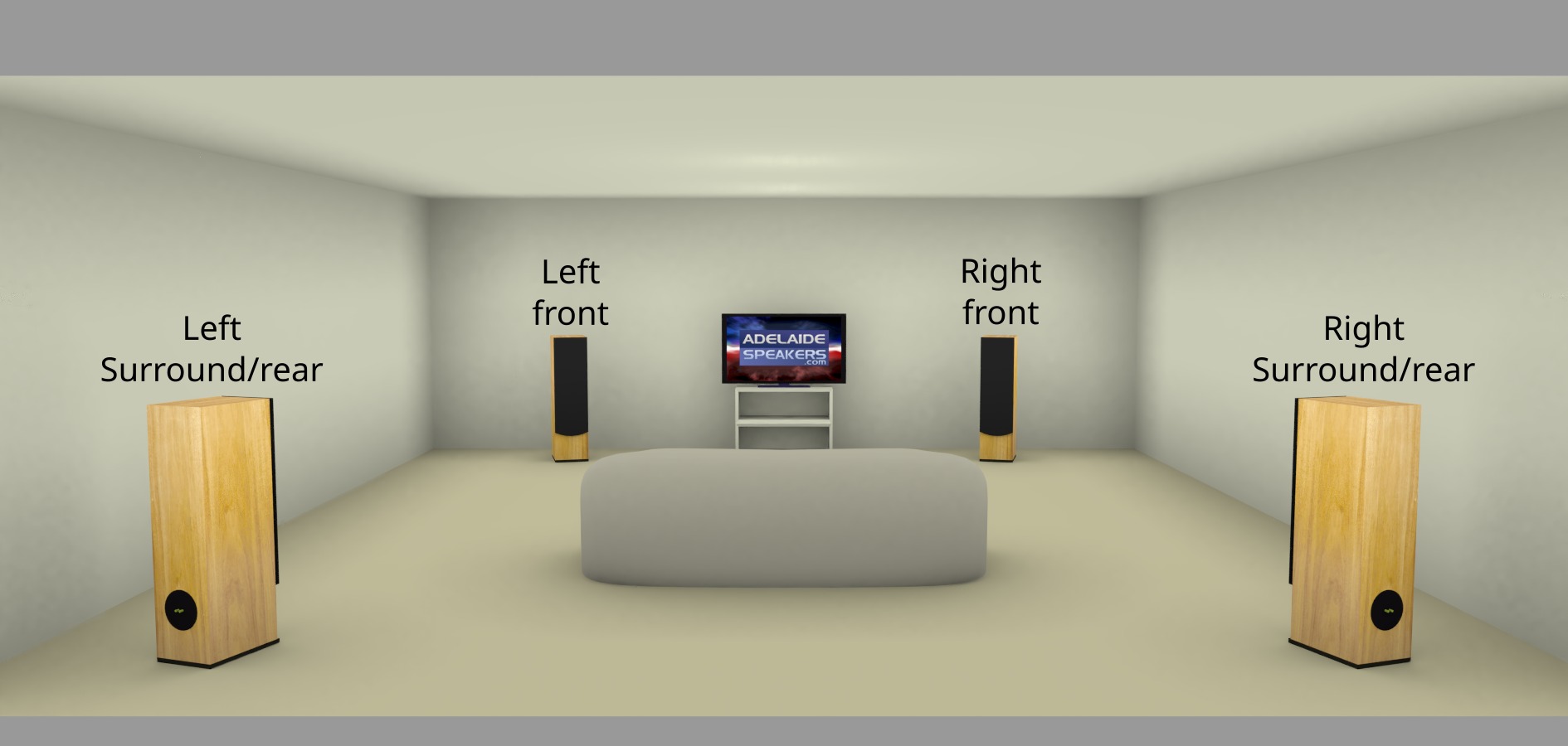 Bookshelf or flat panel speakers can also be used as fronts either stand or wall mounted.