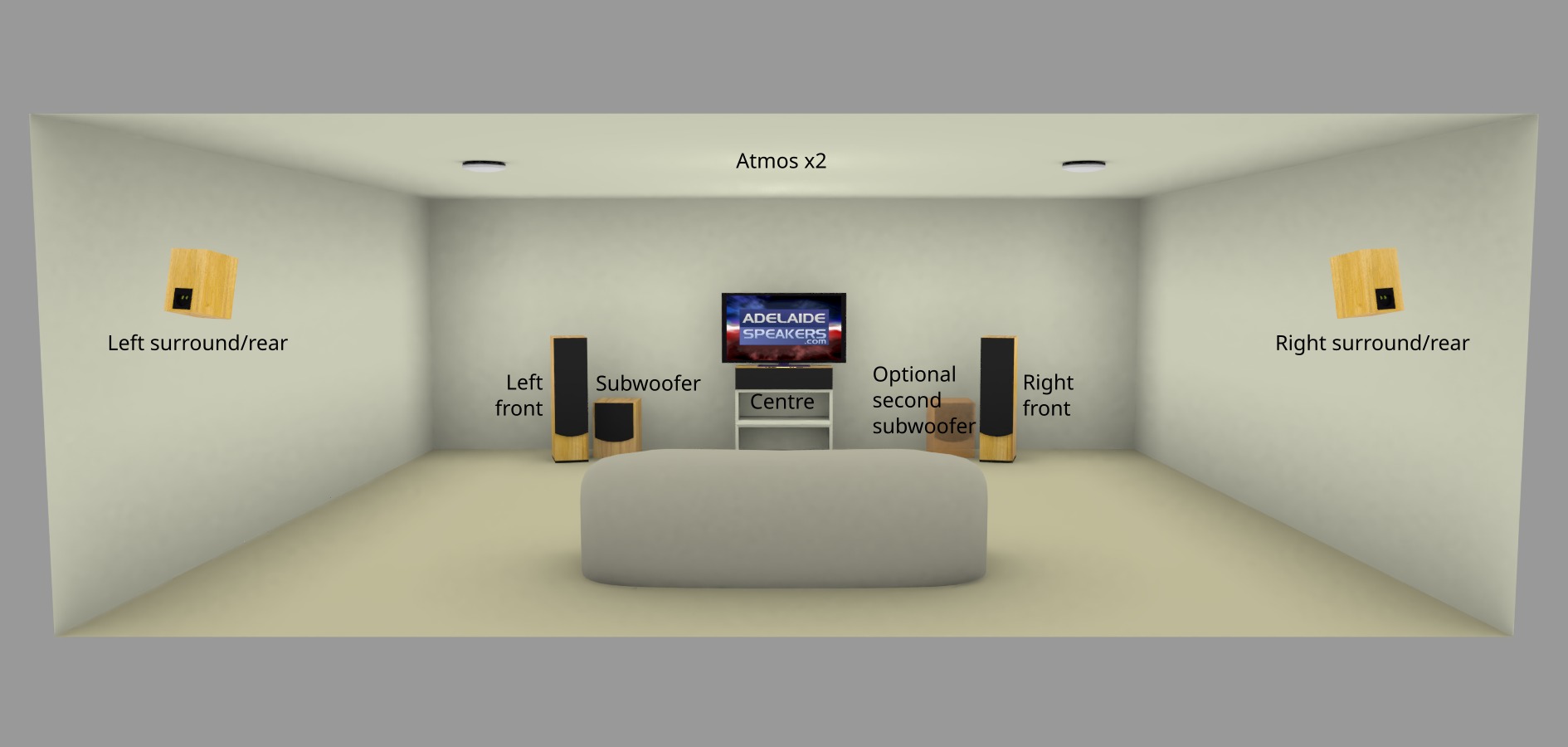 Adding Ceiling speakers for Atmos, DTS:X etc.: +$200 per pair for 6.5 inch Accento Dynamica ceiling speakers or +$250 per pair for the 8 inch versions.